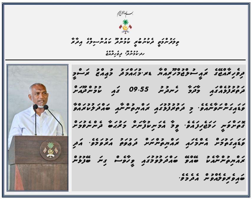 ރައީސުލްޖުމްހޫރިއްޔާ ކުމުންދޫއަށް ވަޑައިގަންނަވަނީ 26/08/2025 / އެޑްމިން / 1 މިނެޓް ކިއުމަށް ހޭދަވާނެކުމުންދޫ ކައުންސިލުން ކޮށްފައިވާ ޕޯސްޓެއްގައިރައީސުލްޖުމްހޫރިއްޔާގެ ރަސްމީ ދަތުރުފުޅާ ގުޅޭ ކުރިއަށް ފަހަތަށް